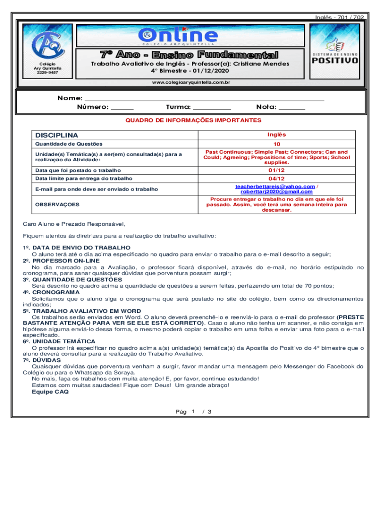 Obtenha o gratuito Nmero: Turma: Nota