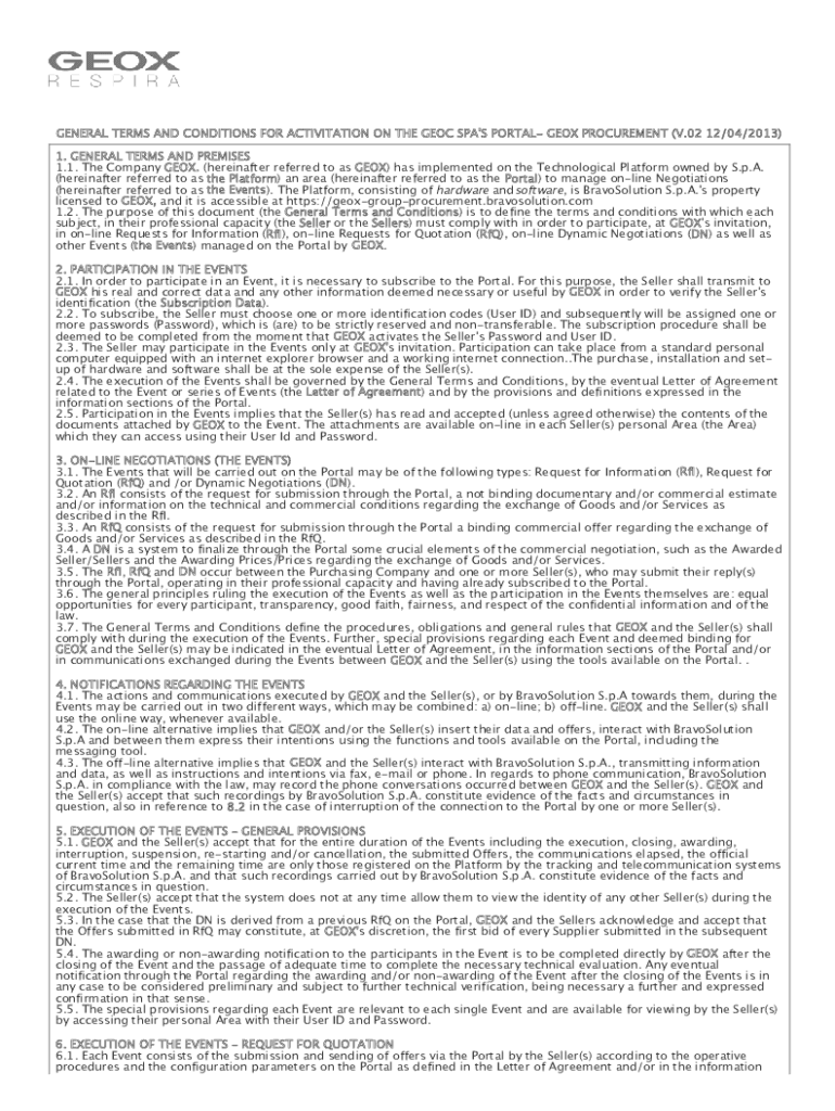 Anyone who is engaging in a procurement process with geox, whether as a supplier or a client, will need to fill out the user agreement geox procurement.