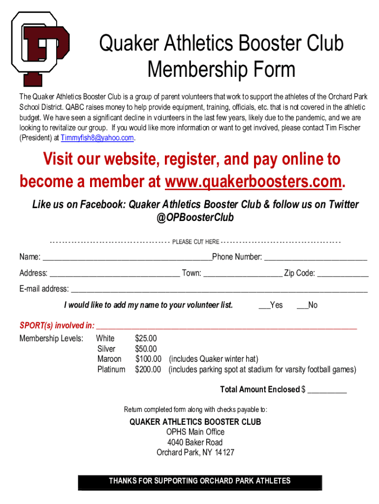 Get the free Quaker Athletics Booster Club Membership Form - Orchard Park ...