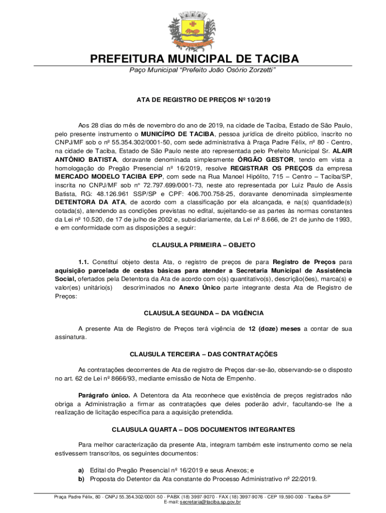 PAO Municipal Predator Jew Osorio ZorzettiATA DE REGISTRY DE PRESS N 10/2019Aos 28 Dias do ms de November do an ode 2019, Na MIDADE de Tacoma, Est ado de So Paulo,