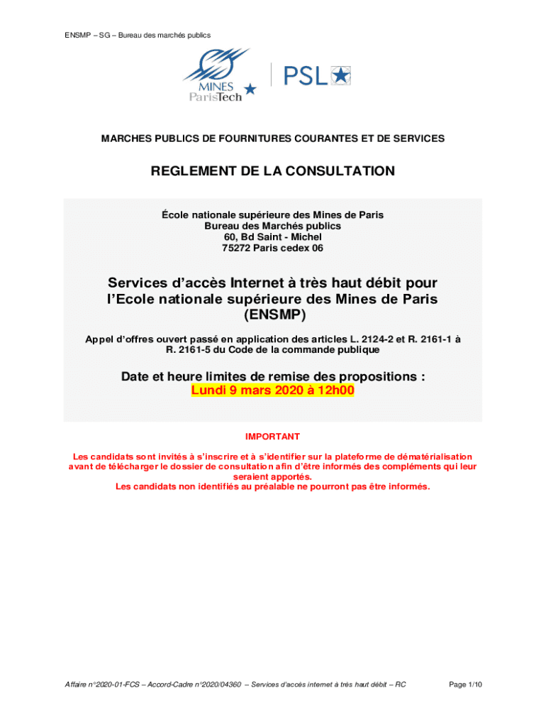 ENSCP SG Bureau DES marches publicsMARCHES PUBLIC SDE FURNITURE CURATES ET DE SERVICESREGLEMENT DE LA CONSULTATIONcole national supreme DES Mines de Paris
