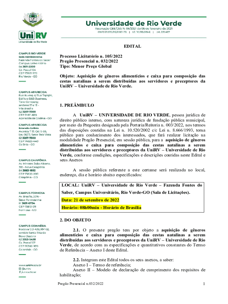 Obtenha o gratuito Objeto: Aquisio de gneros alimentcios e caixa para composio das