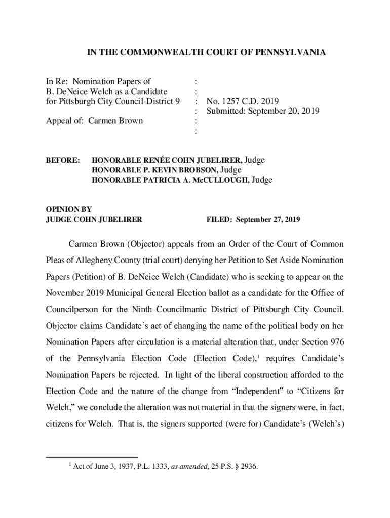 Get the free Nomination Papers of : B. DeNeice Welch as a Candidate