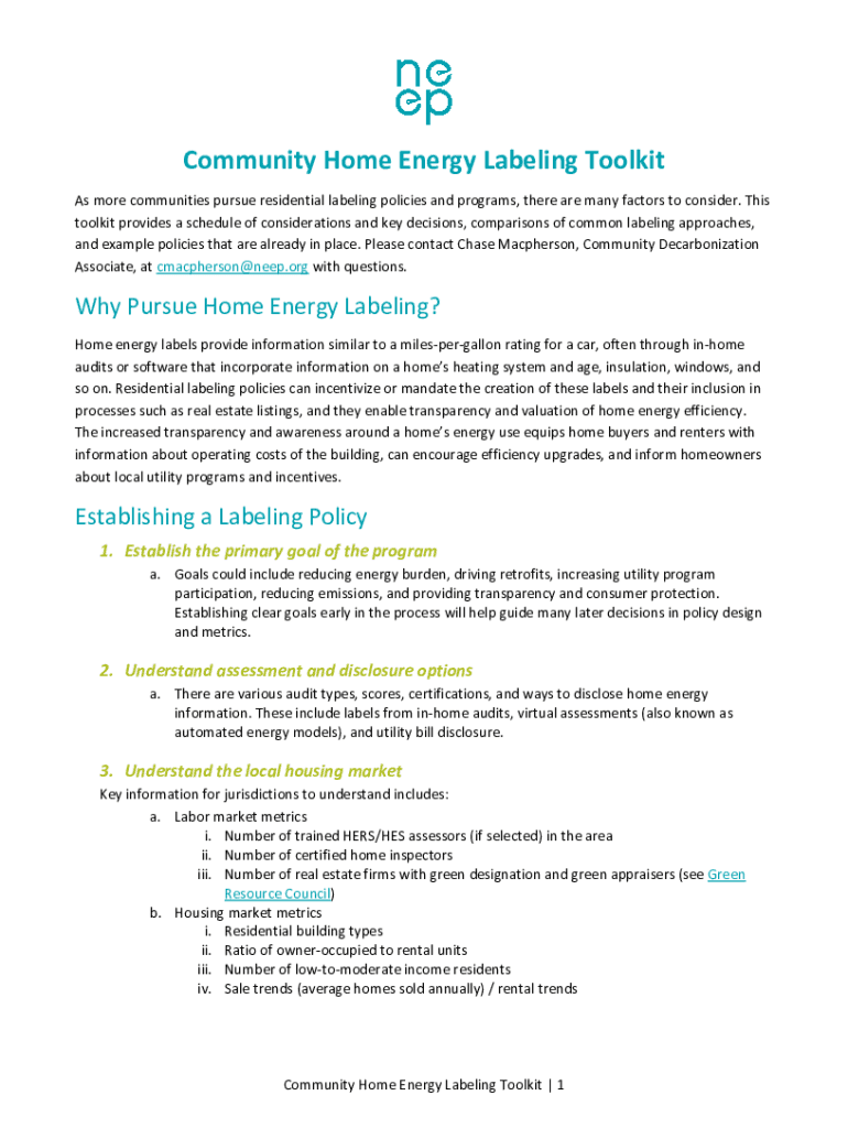 Community Home Energy Labeling Toolkit As more communities pursue residential labeling policies and programs, there are many factors to consider. This toolkit provides a schedule of considerations
