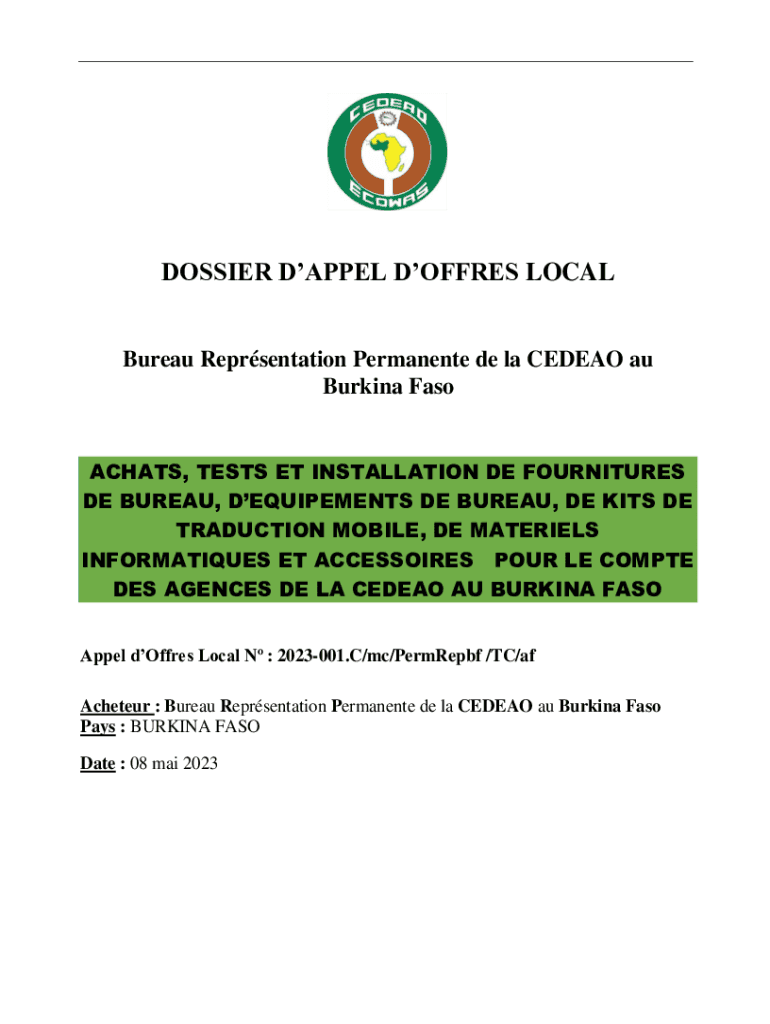Obtenir le gratuit Fourniture, installation et mise en service de matriels et d' ...