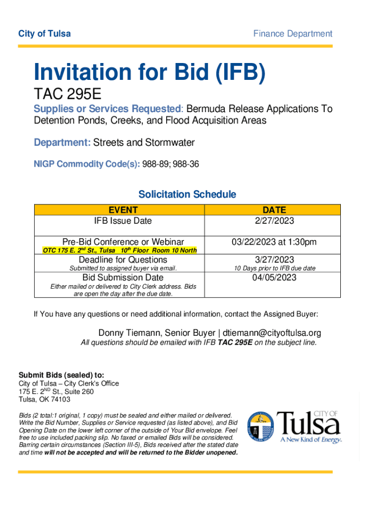 City of TulsaFinance DepartmentInvitation for Bid (IF)