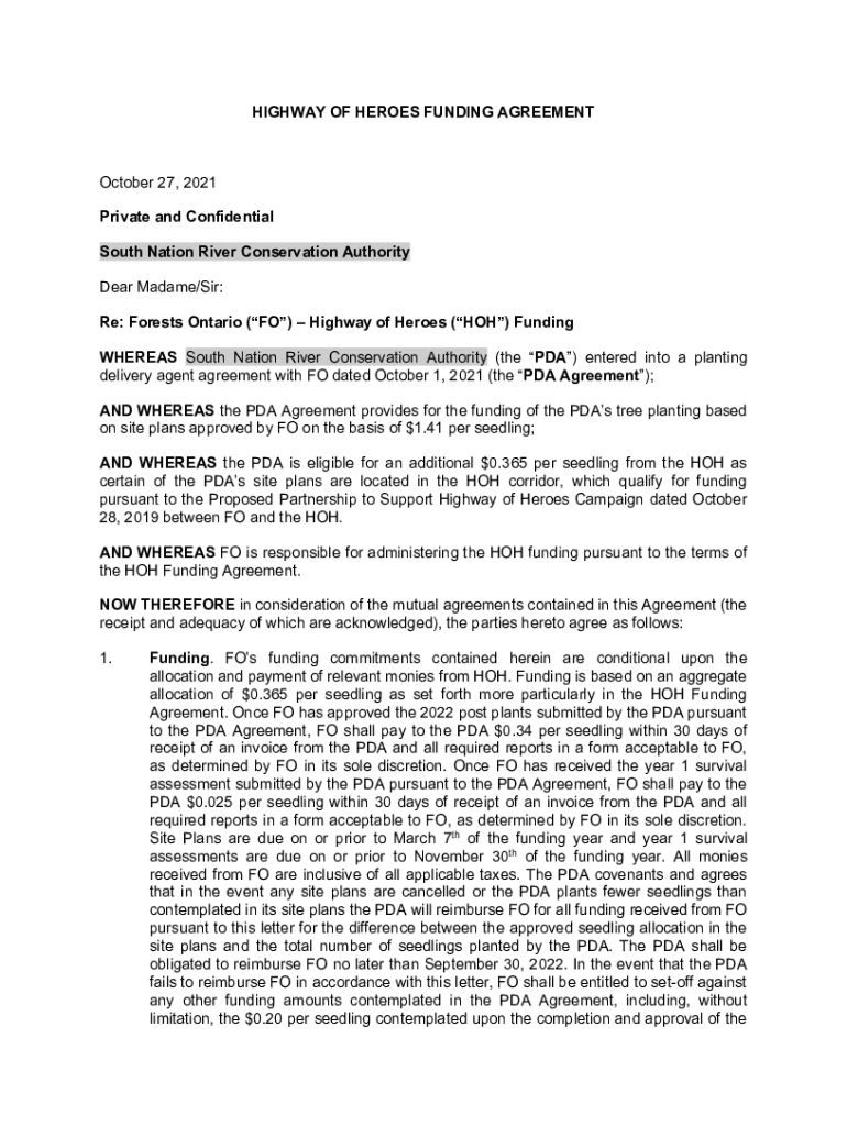 Get the free Highway of Heroes Funding Agreement