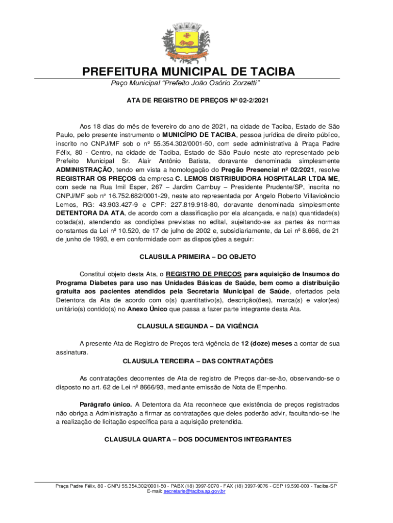 Obtenha o gratuito Aos 18 dias do ms de fevereiro do ano de 2021, na cidade de Taciba, Estado de So