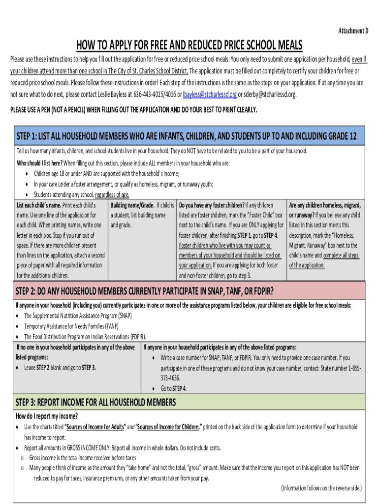 Attachment DHOW TO APPLY FOR FREE AND REDUCED PRICE SCHOOL MEALS Please use these instructions to help you fill out the application for free or reduced price school meals. You only need to submit