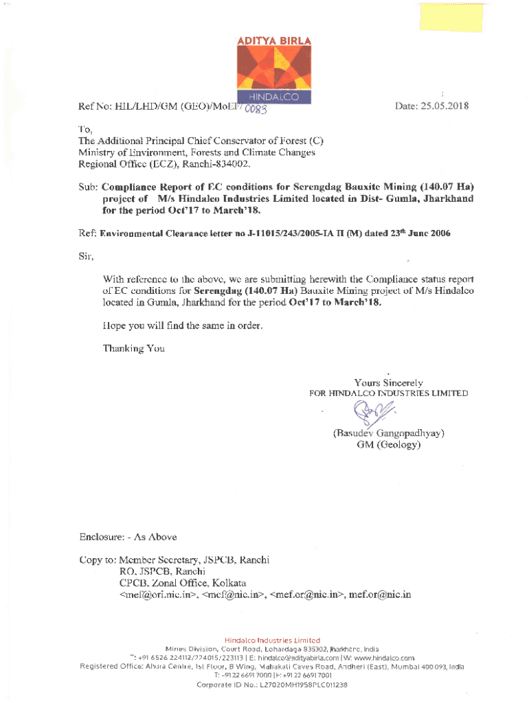 ADITYA Biplane No: HIS/LED/GM (GEO)/Mo To, The Additional Principal Chief Conservator of Forest © Ministry of Environment, Forests and Climate Changes Regional Office (ECG), Ranchi8 34002.for Serena