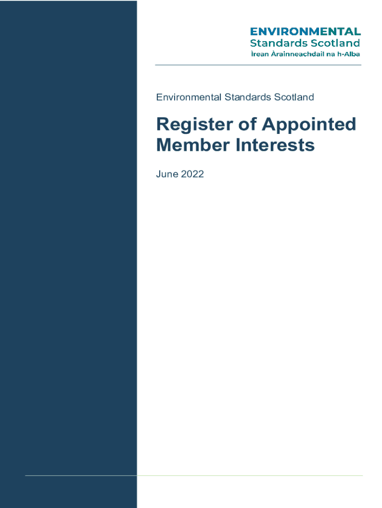 Environmental Standards ScotlandRegister of Appointed Member Interests June 2022Register of Appointed Member Interests Category One: Remuneration Environmental Standards Scotland Code of Conduct,