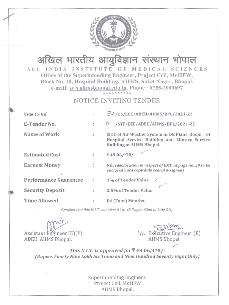 ABEL Name of work: AIMS INDEX SITE of AIR Washer system in DG plant room of hospital service building and library service building of AIMS Bhopal. Sr. No. Contents Page No. Remarks1Index1 to 22.PART