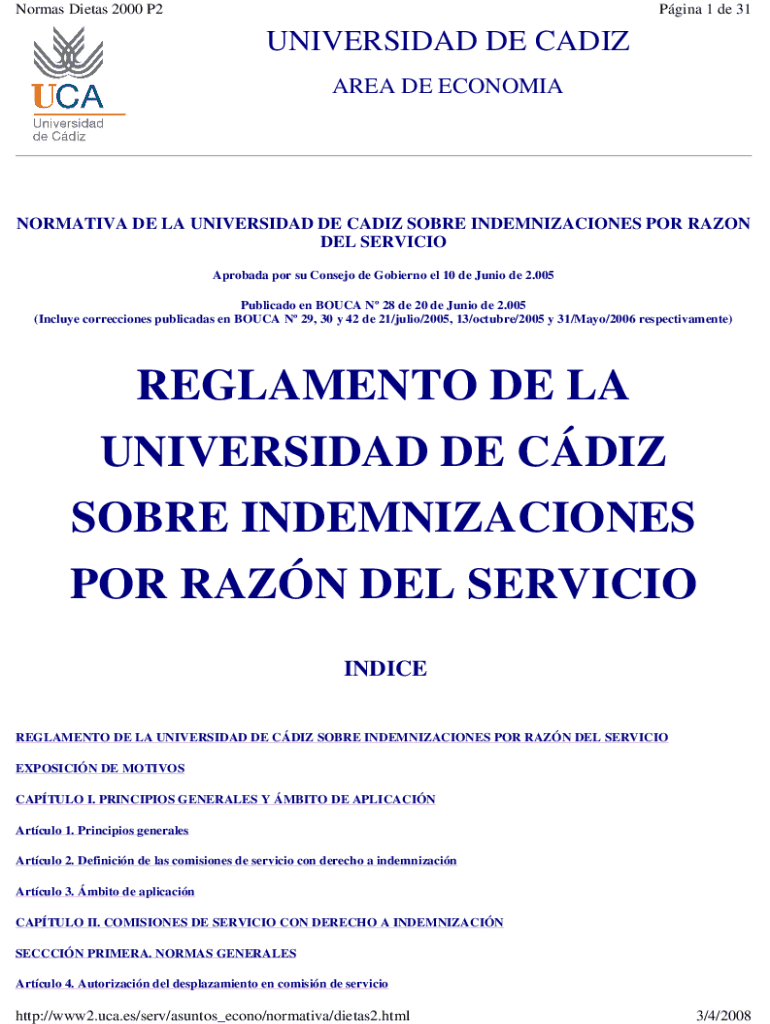 AREA DE ECONOMIANORMATIVA DE LA UNIVERSITY DE CADIZ SORE INDEMNIZACIONES POR RAZOR