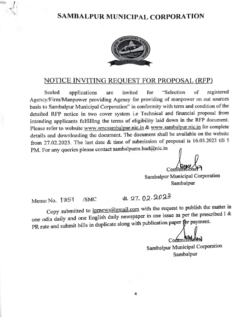 Get the free Notice inviting Request for proposal for selection of ...