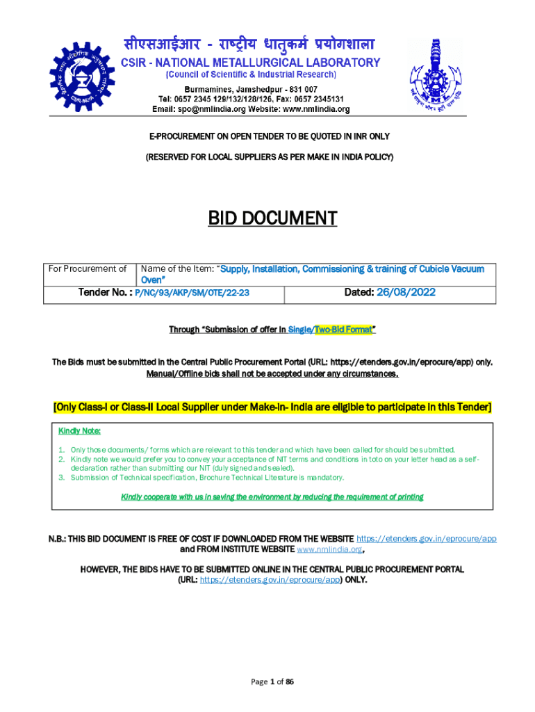 PROCUREMENT ON OPEN TENDER TO BE QUOTED IN INR ONLY (RESERVED FOR LOCAL SUPPLIERS AS PER MAKE IN INDIA POLICY)BID DOCUMENT For Procurement name of the Item: Supply, Installation, Commissioning & training