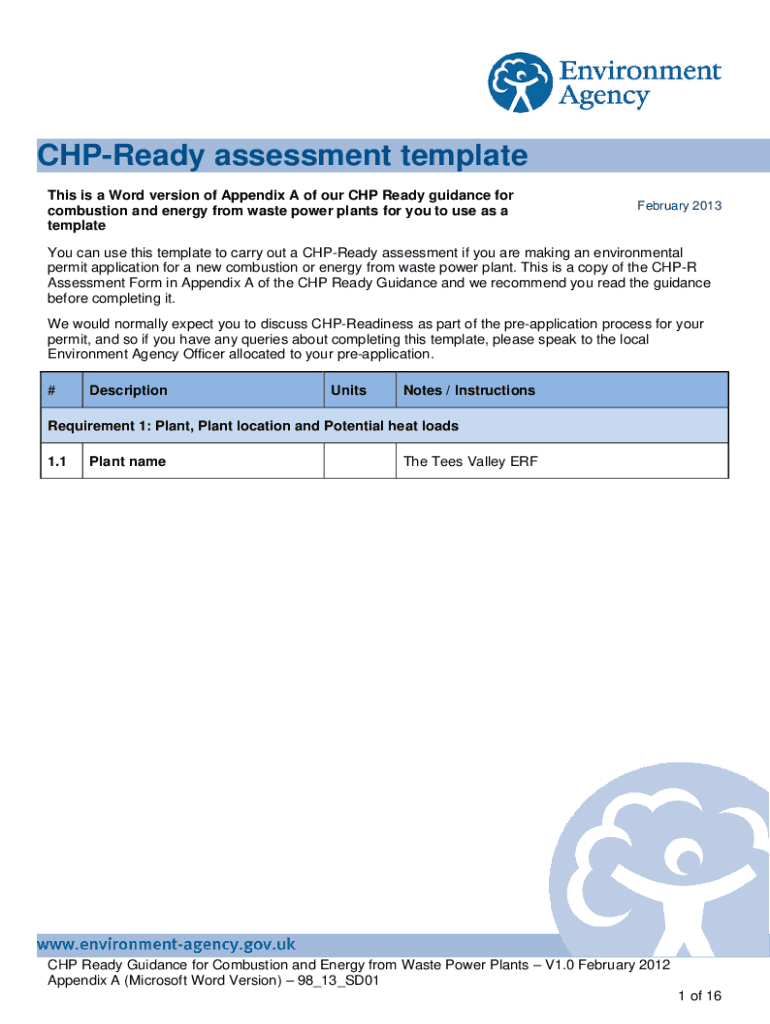 The chp-ready assessment template is a document used to assess the readiness of a Combined Heat and Power (CHP) system.