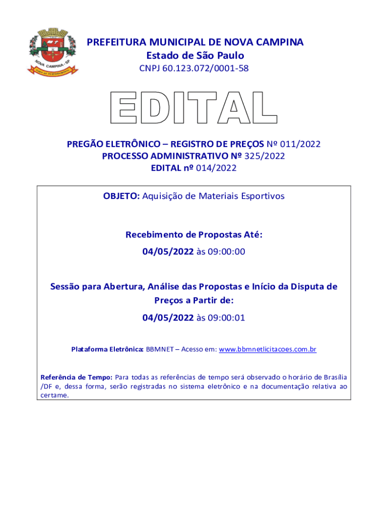 Obtenha o gratuito OBJETO: Aquisio de Materiais Esportivos