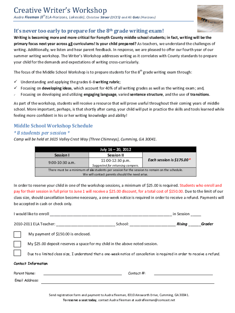 Creative Writers Workshop Chandra Freeman (8 Horizons, Lakeside), Christine Ströer (DOES) and Ali Got (Horizons)It's never too early to prepare for the 8th grade writing exam! Writing is becoming