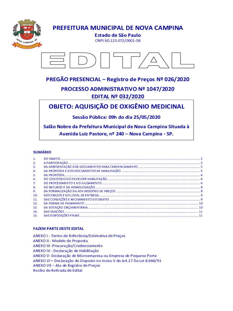 Obtenha o gratuito OBJETO: AQUISIO DE OXIGNIO MEDICINAL