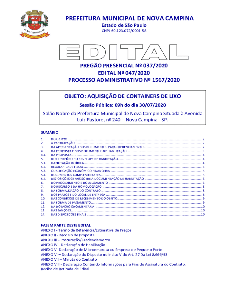 Obtenha o gratuito OBJETO: AQUISIO DE CONTAINERS DE LIXO
