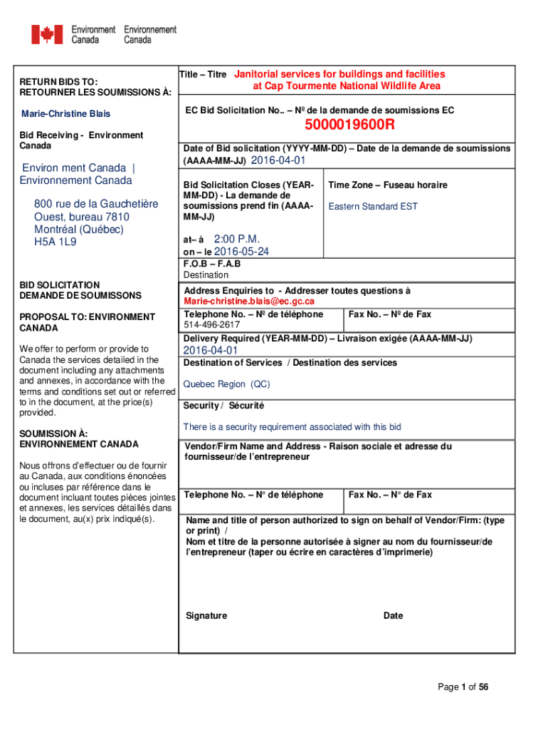 RETURN BIDS TO: RETURNER LES COMMISSIONS : Marie Christine Blair Bid Receiving Environment CanadaEnviron meet Canada | Environment Canada 800 rue DE la Gauche tire Guest, bureau 7810 Montreal (Quebec)