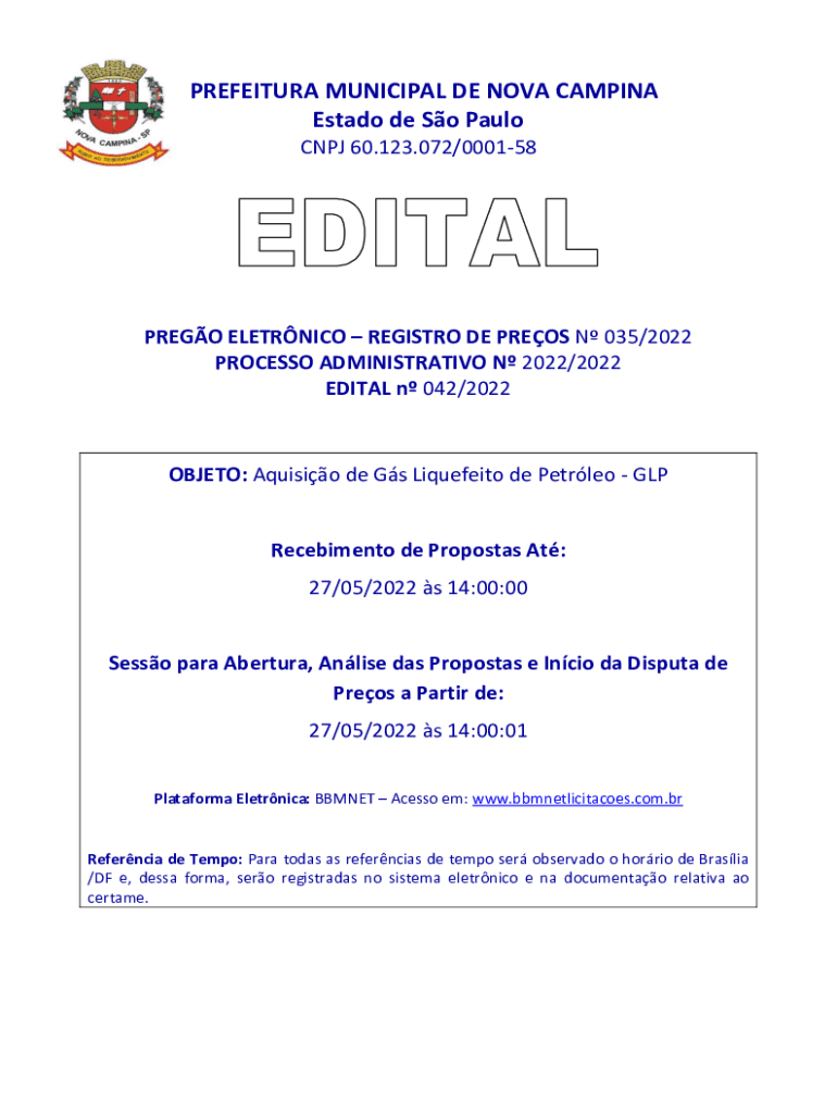EDIT AL n 042/2022OBJETO: Aquino de Gs