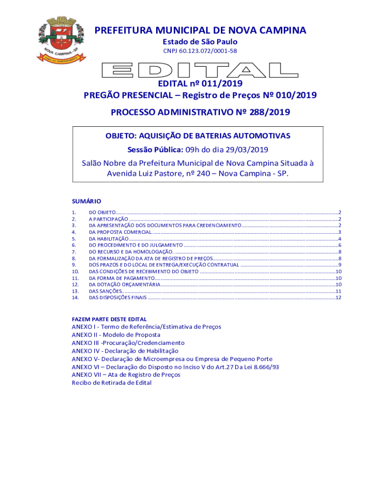 Obtenha o gratuito OBJETO: AQUISIO DE BATERIAS AUTOMOTIVAS