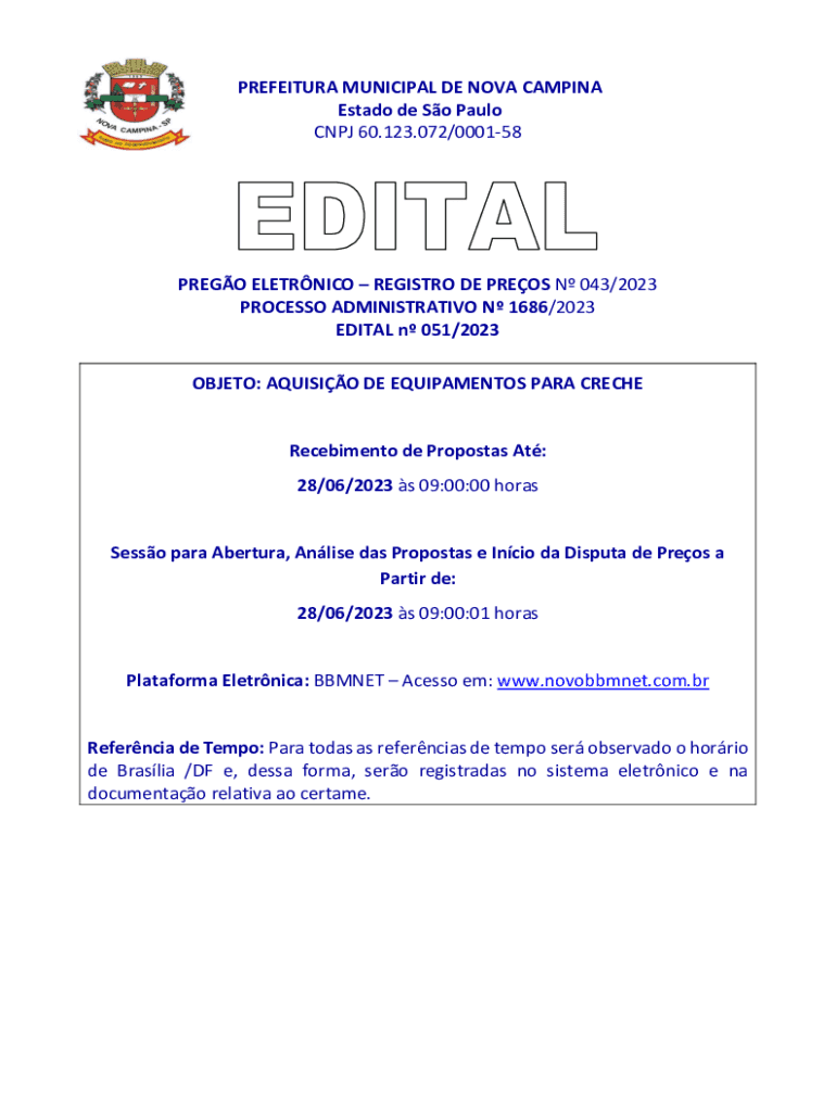 Obtenha o gratuito OBJETO: AQUISIO DE EQUIPAMENTOS PARA CRECHE