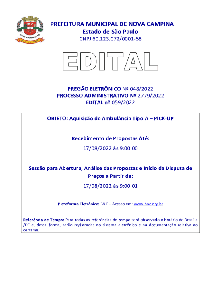 Obtenha o gratuito OBJETO: Aquisio de Ambulncia Tipo A PICK-UP