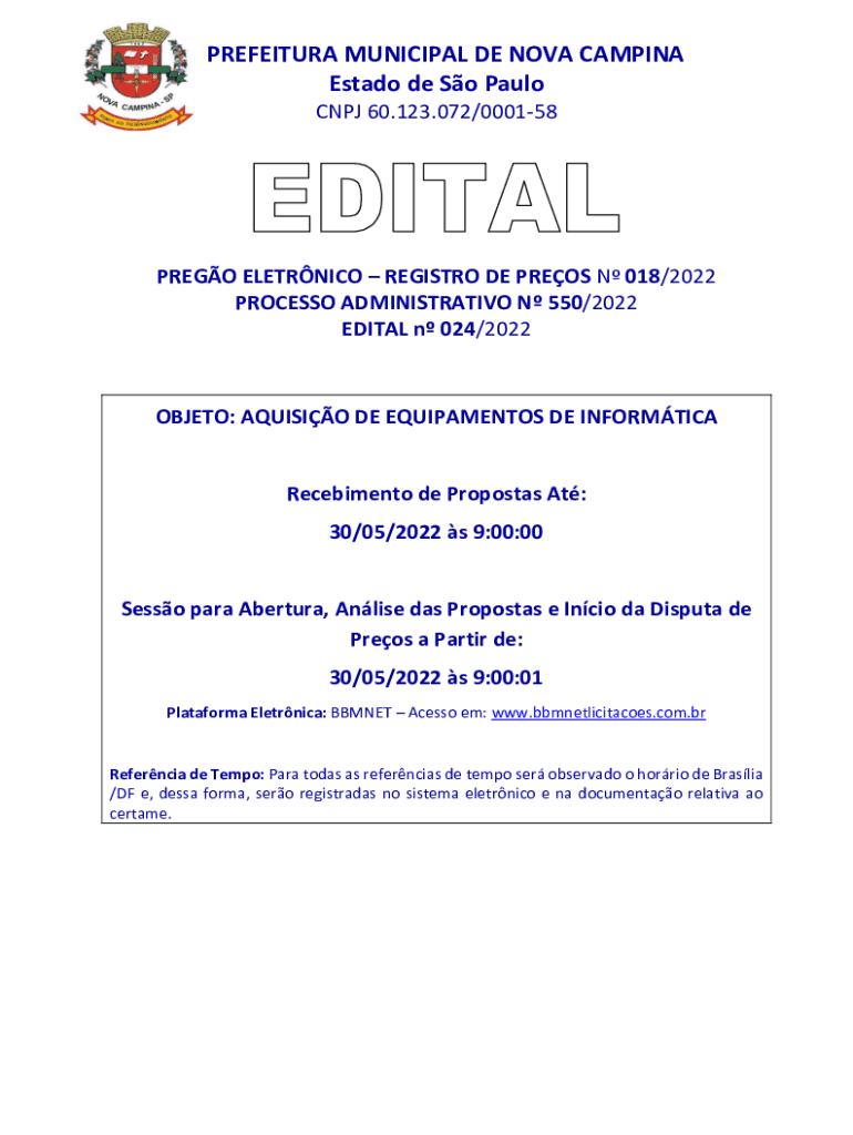 EDIT AL n 024/2022OBJETO: AQUINO DE EQUIPMENTS