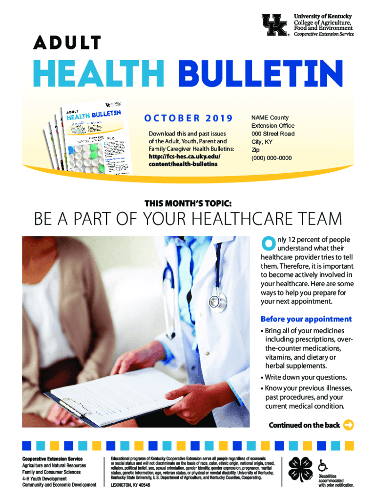 Get the free October 2019 Adult Health Bulletin. Be a part of your healthcare team - fcs-hes ca uky