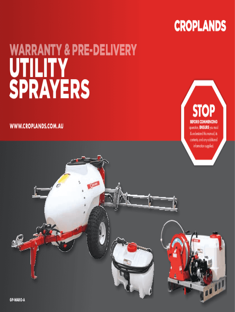 WARRANTY & PREDELIVERYUTILITY SPRAYERS WWW.CROPLANDS.COM.AU1GPWAROA GPWAROASTOPBEFORE COMMENCING operation, ENSURE you read & understand this manual, its contents, and any additional information supplied.