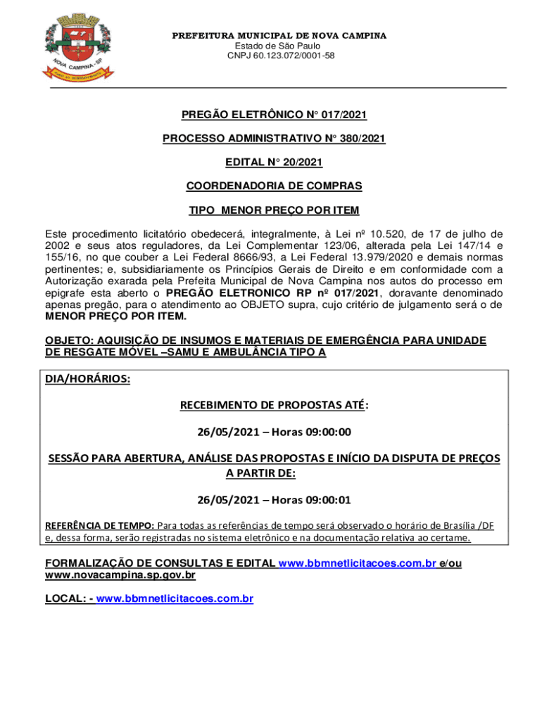 CNJ 60.123.072/000158PREGO ELECTRIC N 017/2021