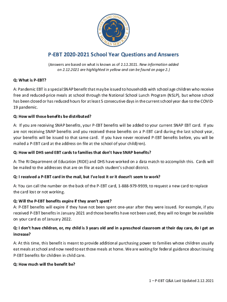 Get the free Summer Pandemic Electronic Benefit Transfer (P-EBT) - dhs ri