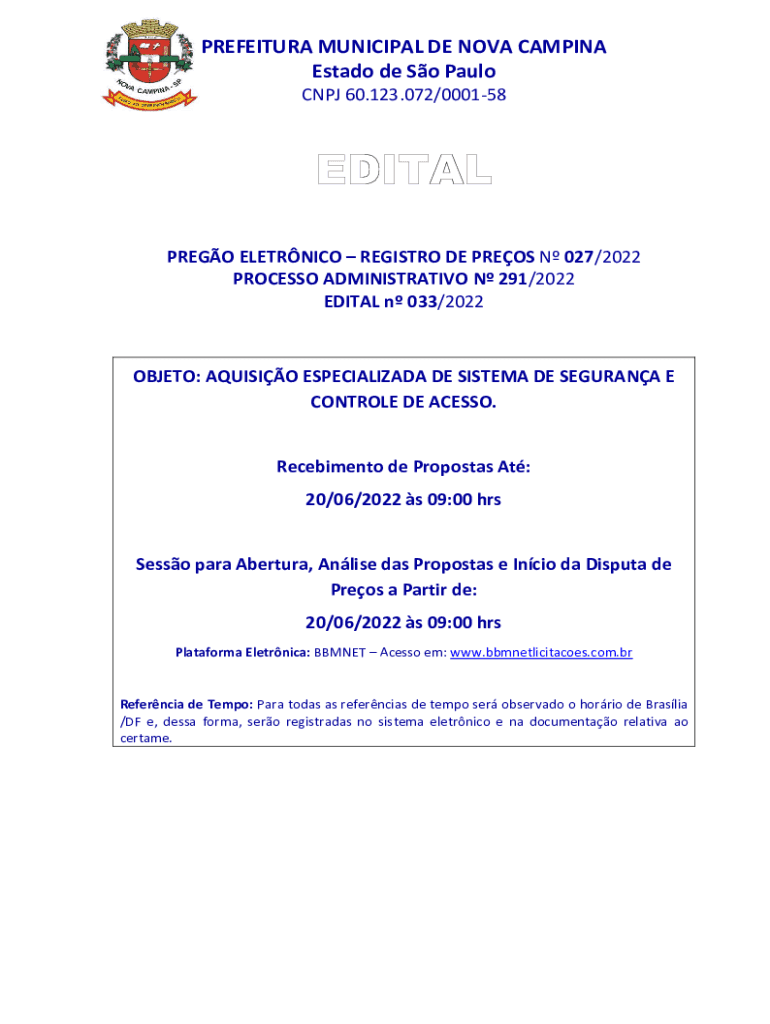 Obtenha o gratuito OBJETO: AQUISIO ESPECIALIZADA DE SISTEMA DE SEGURANA E