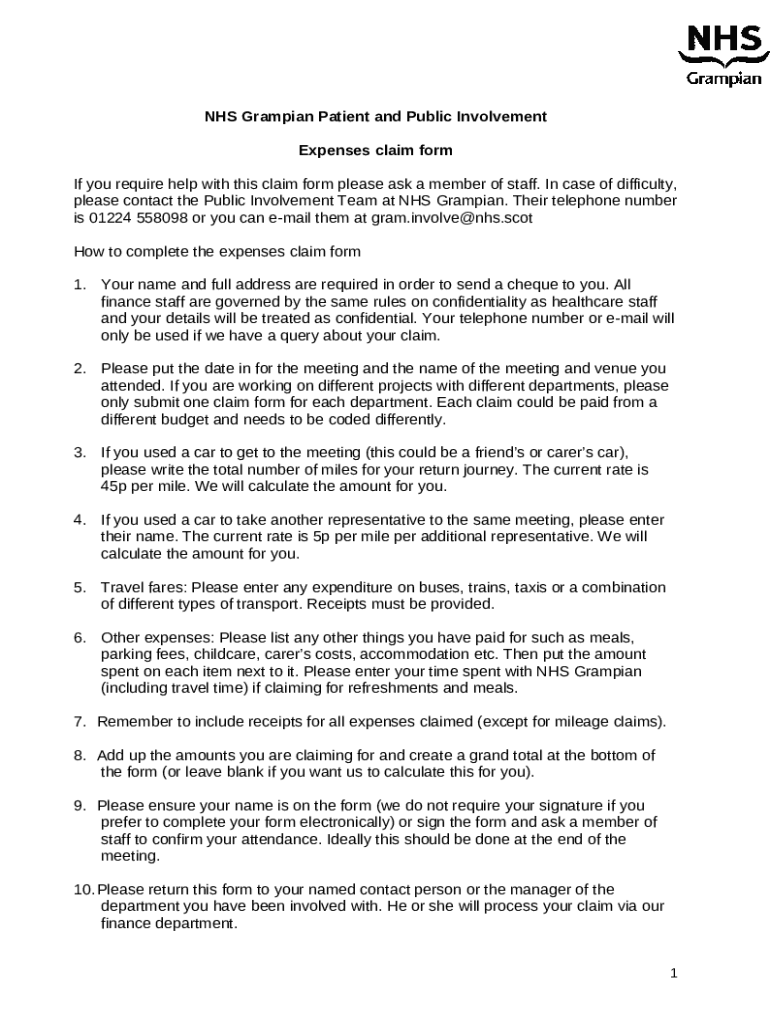 Instructions for the form NHS Grampian Local Claim s - National Services Scotland