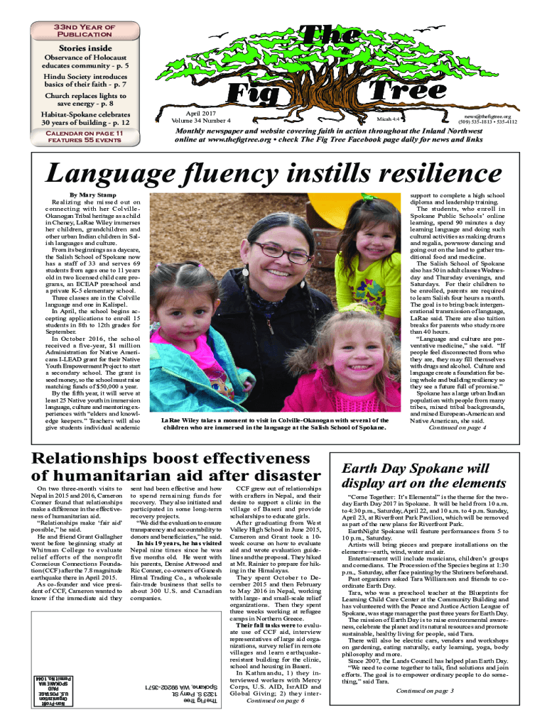 33rd Year of PublicationStories inside Observance of Holocaust educates community p. 5 Hindu Society introduces basics of their faith p. 7 Church replaces lights to save energy p. 8 April 2017 Volume