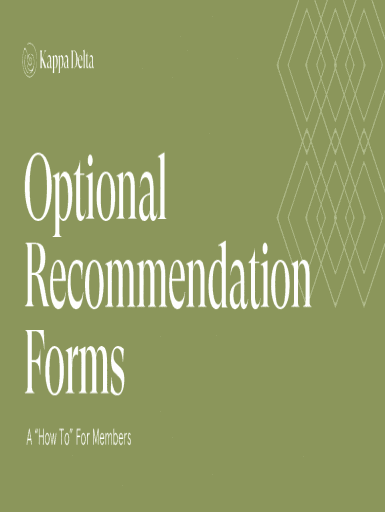 Optional Recommendation Forms A How-To For Membership Can You Help? To position every Kappa Delta chapter for greatest success in any recruitment scenario, we need to assist our chapters by proactively