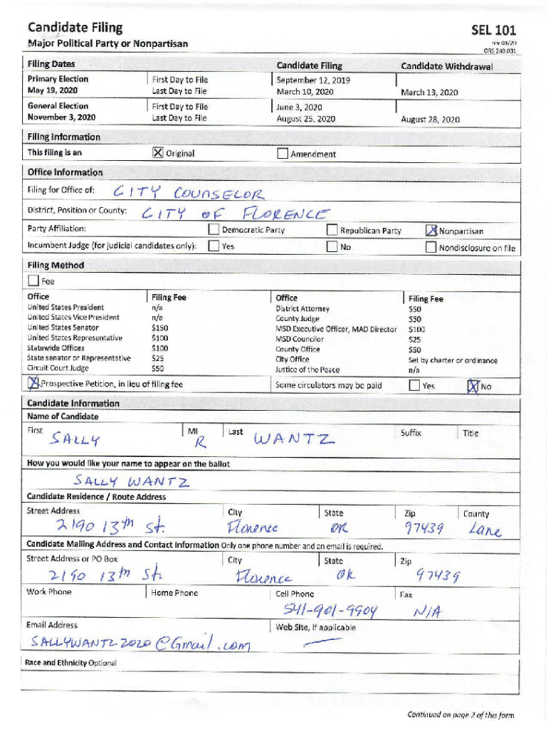 Candidate Filing SEL 101Major Political Party or Nonpartisan rev 01/20