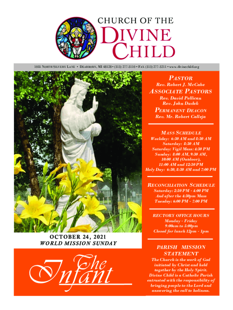 1055 NORTH SILVERY LANE DEARBORN, MI 48128 (313) 2773110 FAX (313) 2773211 www.divinechild.orgPASTORRev. Robert J. McCabeASSOCIATE PASTORS