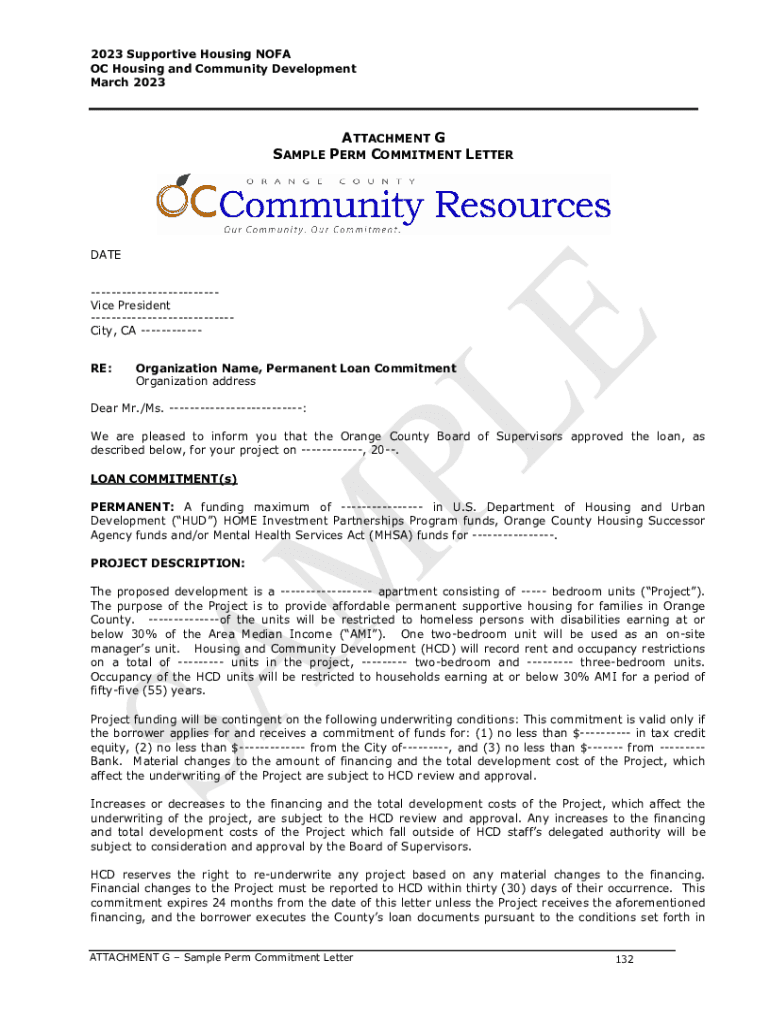 2023 Supportive Housing NOVA OC Housing and Community Development March 2023ATTACHMENT G SAMPLE PERM COMMITMENT LITTERMATE Vice President City, CA RE:Organization Name, Permanent Loan Commitment Organization