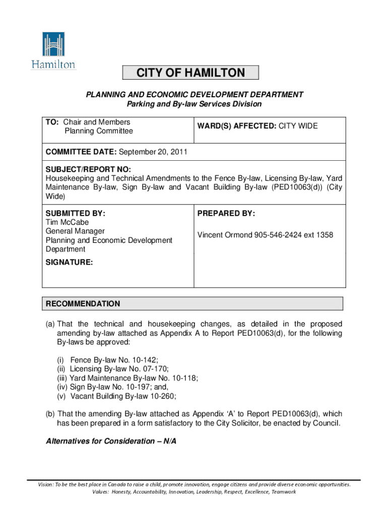 Get the free Housekeeping and Technical Amendments to the Fence By-law, Licensing By-law, Yard Ma...
