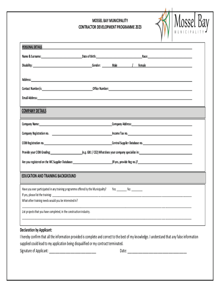 CONTRACTOR DEVELOPMENT Program 2023PERSONAL DETAILS