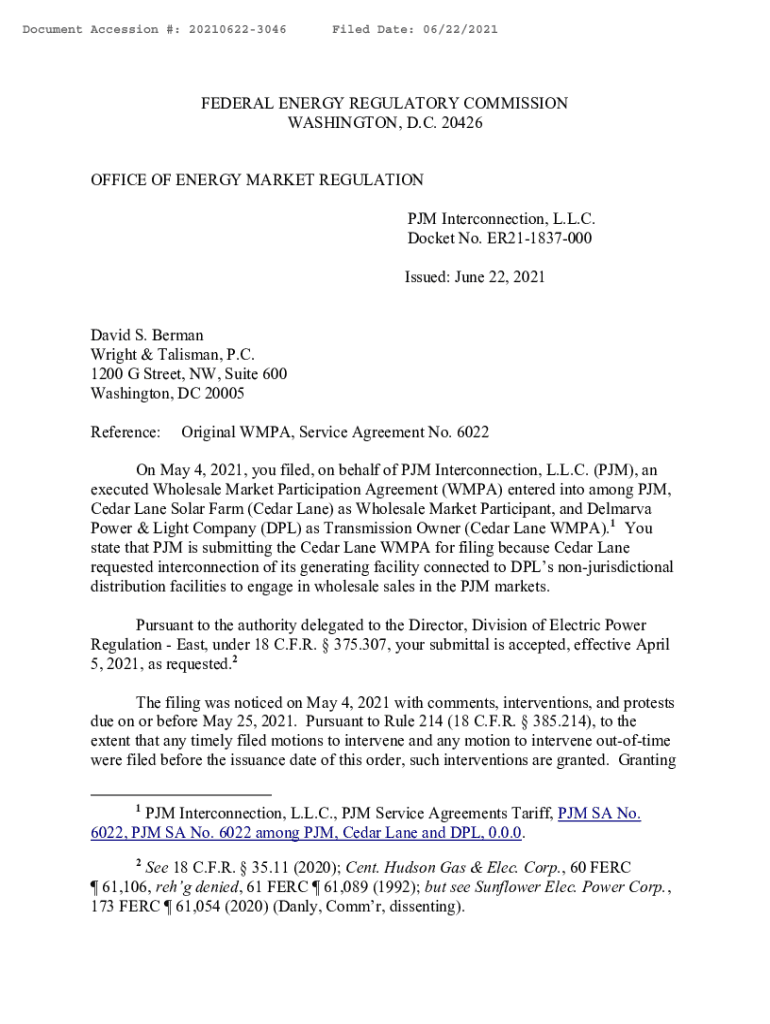 Document Accession #: 202106223046Filed Date: 06/22/2021FEDERAL ENERGY REGULATORY COMMISSION WASHINGTON, D.C. 20426 OFFICE OF ENERGY MARKET REGULATION PM Interconnection, L.L.C. Docket No. ER211837000