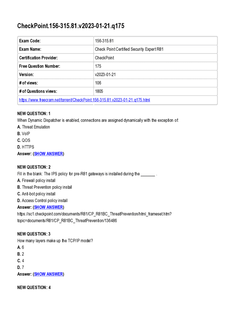 Get the free CheckPoint.156-315.81.v2023-01-21.q175. CheckPoint.156-315.81.v2023-01-21.q175