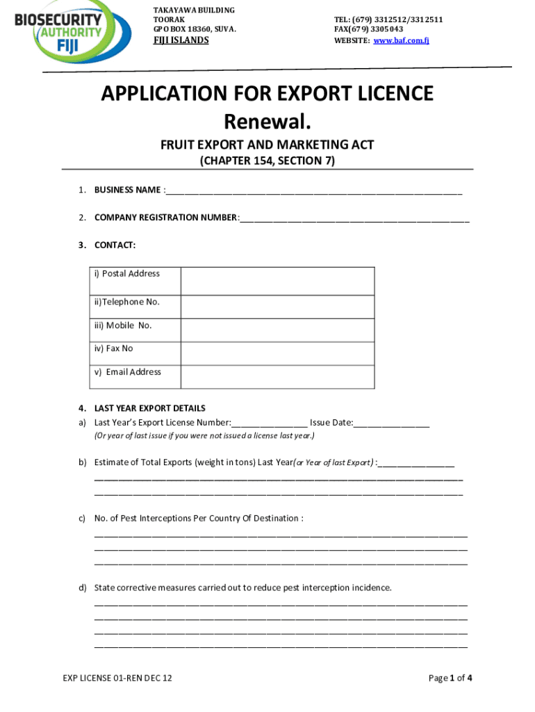 WEBSITE: www.baf.com.fjAPPLICATION FOR EXPORT License