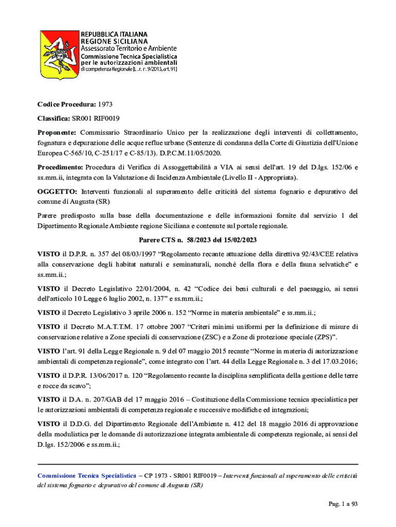 Proponent: Commissary Straordinario UNIDO per la realization deli intervention DI collettamento,