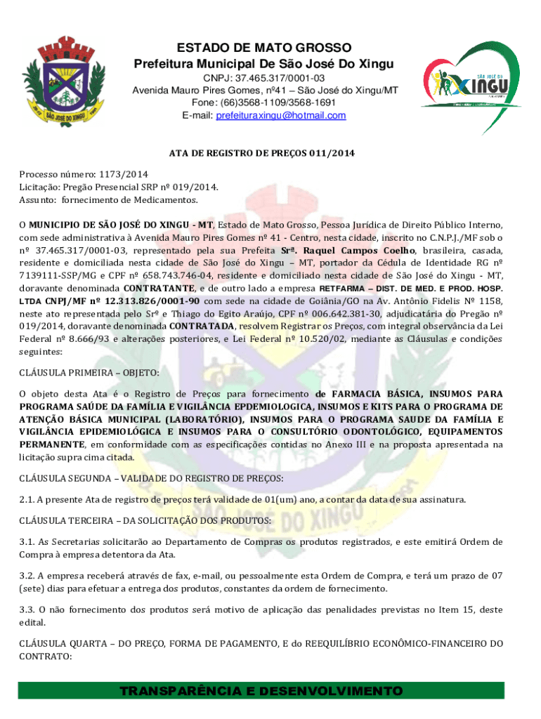 Agenda Mauro Fires Gomes, n41 So Jo's do Xingu/MTF one: (66)35681109/35681691