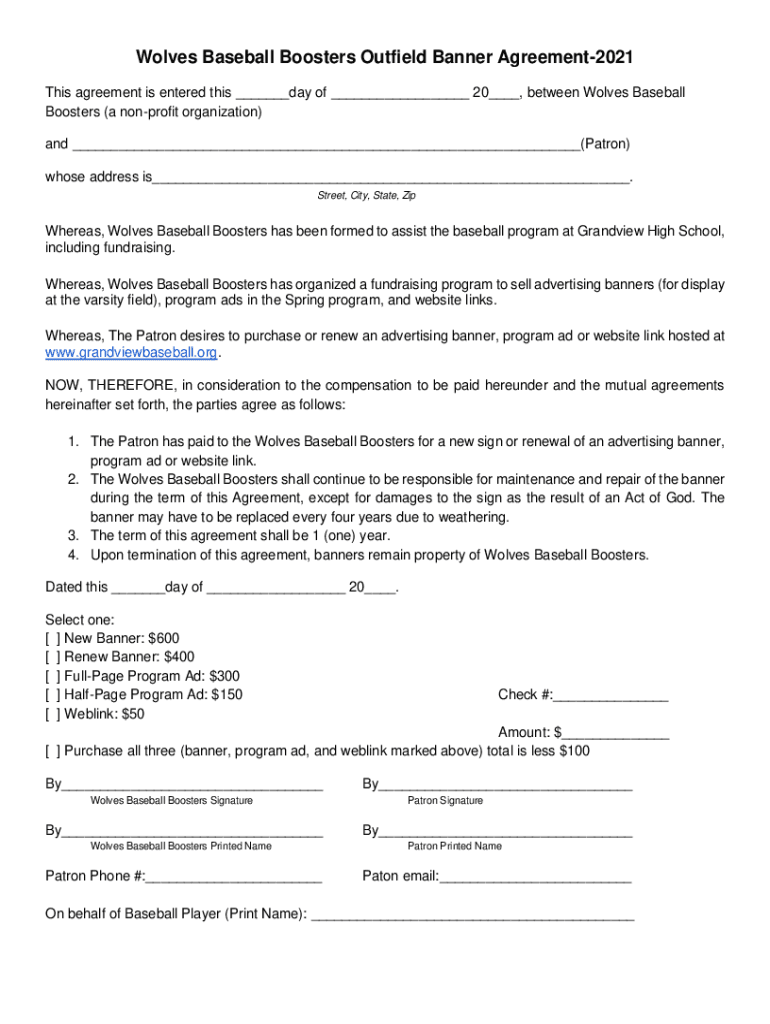 Wolves Baseball Boosters Outfield Banner Agreement2021
