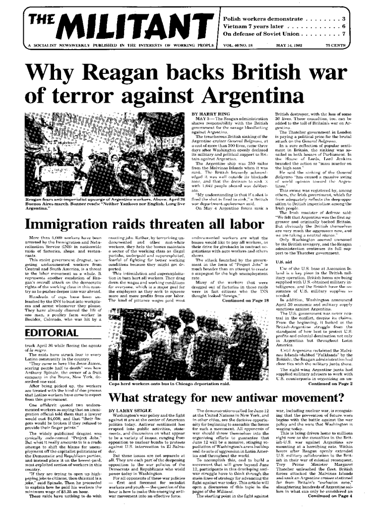 On defense of Soviet Union. . A SOCIALIST NEWSWEEKLY PUBLISHED IN THE INTERESTS OF WORKING PEOPLE. 46/NO. 18MAY 14, 1982. . . . 3. . 6.